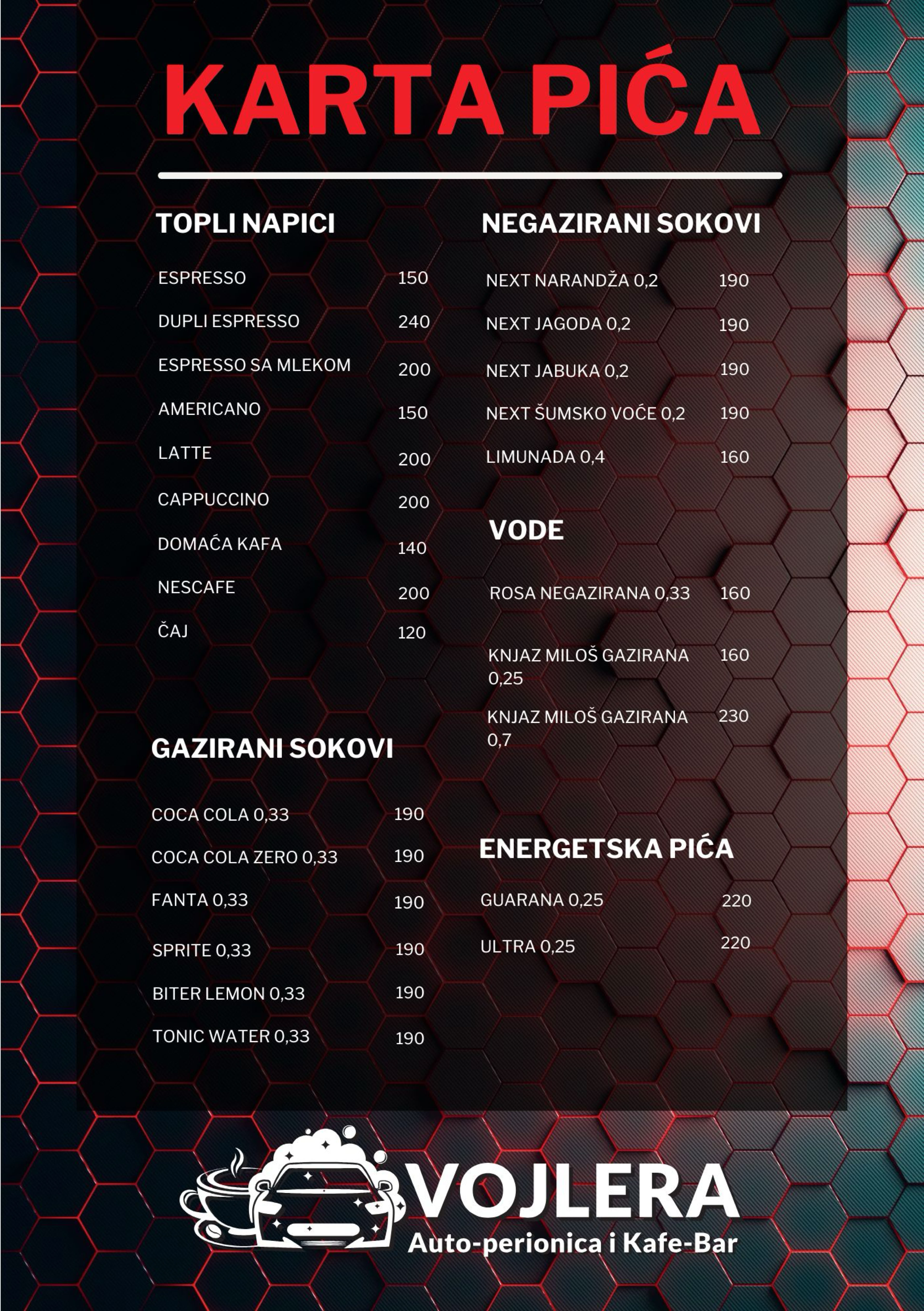 Cenovnik kafe-bara