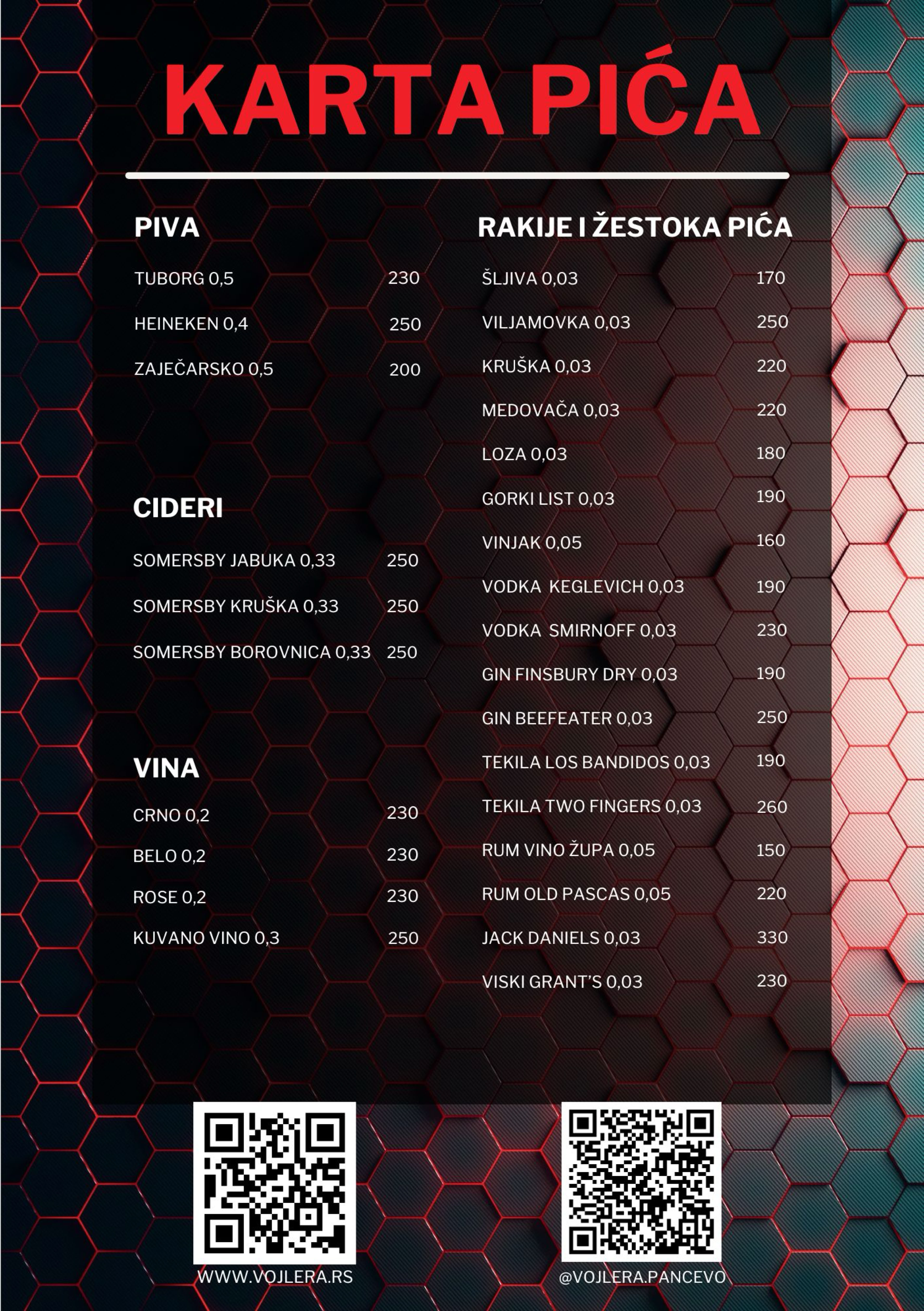 Cenovnik kafe-bara